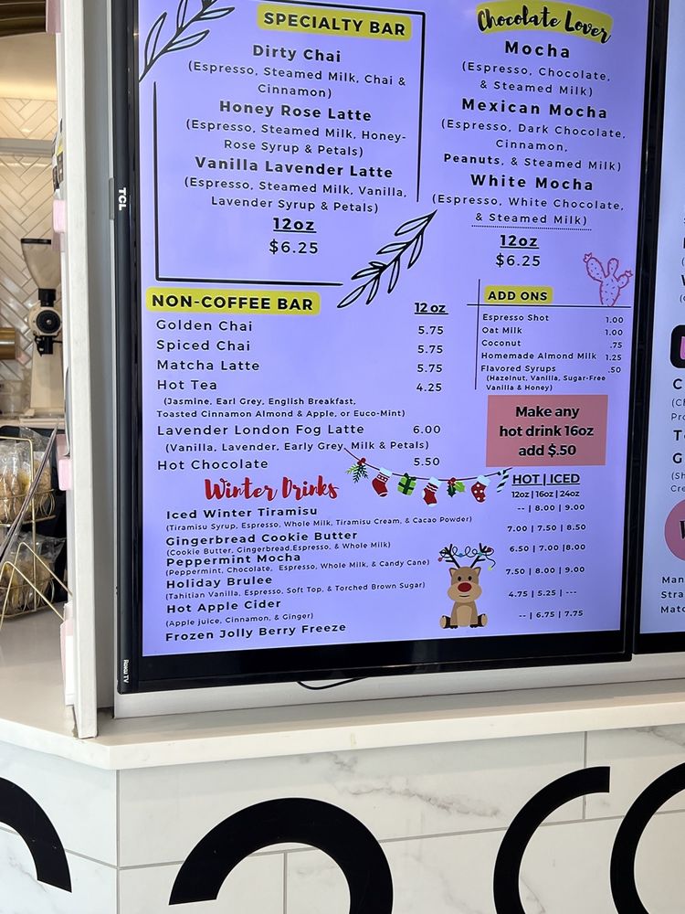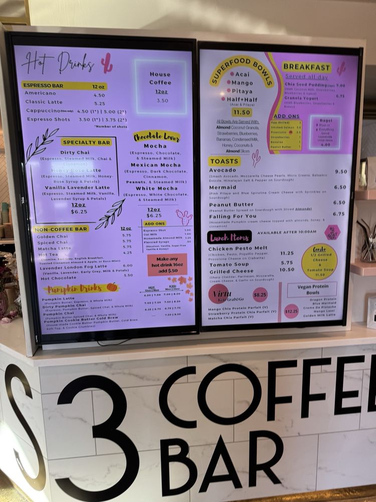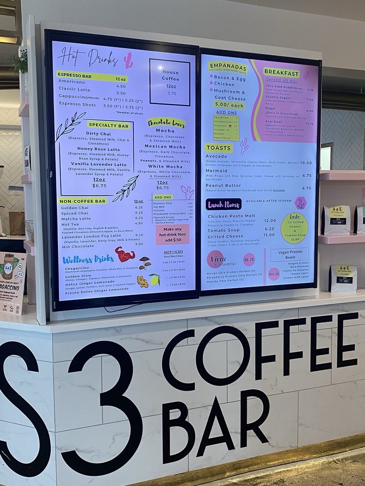 S3 Coffee Bar, located in San Diego, is a charming spot offering desserts with a variety of options. With a drive-thru for convenient service, this Asian and women-owned establishment also provides a cozy atmosphere for studying or relaxing. Customers praise the quick service and delicious drinks, like the Mexican Mocha and Rose Latte. The menu features items like avocado toast and acai bowls, perfect for a light and refreshing bite. The coffee shop boasts a feminine aesthetic and ample seating, both indoors and outdoors. With free Wi-Fi, plenty of outlets, and a buzzer system for order notifications, S3 Coffee Bar ensures a pleasant experience for all. The welcoming staff and high spirits of the place add to the overall positive vibes. Stop by for a delightful treat and enjoyable ambiance at S3 Coffee Bar.